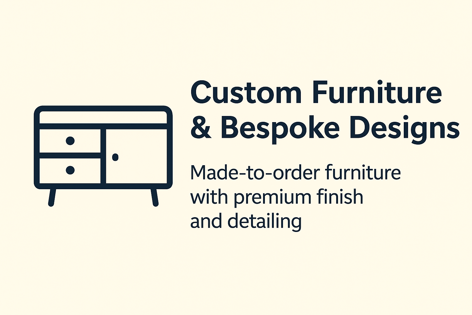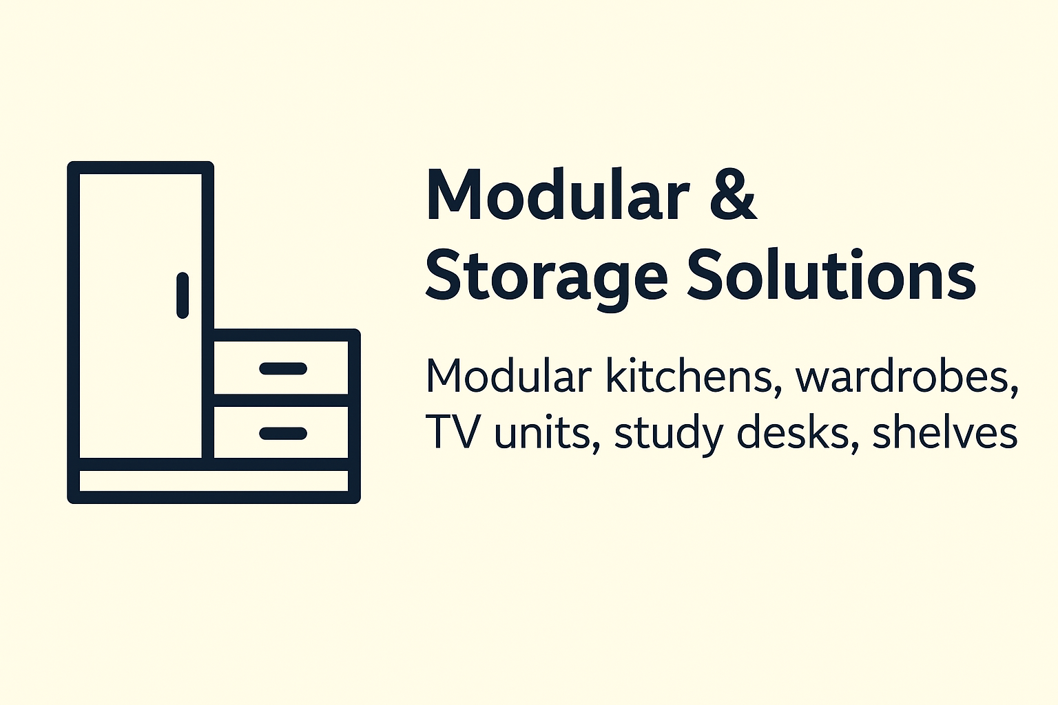 Custom wardrobes, kitchens, dining & study furniture. Local craftsmen with Ladli Construction guarantee — measurements, design and installation.